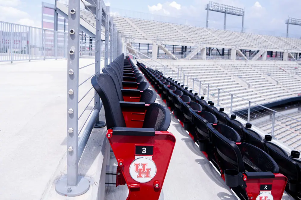 Located in the west endzone of TDECU Stadium, Queenie O'Rourke's Party Patio in the Memorial Hermann Football Operations Center offers expansive views of TDECU Stadium while featuring easy access to concessions and restrooms.